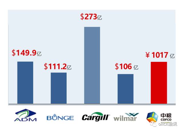 需要说明的是:美国ADM、邦吉Bunge、新加坡丰益国际为上市公司,营收情况公开披露;美国嘉吉Cargill为私人公司,最近的季度财报止于2017年2月28日,不同于其他公司;而路易达孚的营收情况暂时未披露。