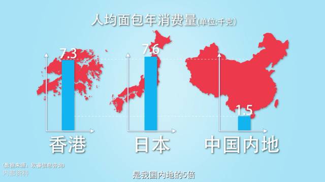 尽管如此,中国的早餐面包市场依然存在着巨大的空白。目前,中国大陆的人均面包年消费量仅为1.5千克,占香港、日本的五分之一,基于中国14亿的人口规模,这一产业未来的发展空间不可限量。