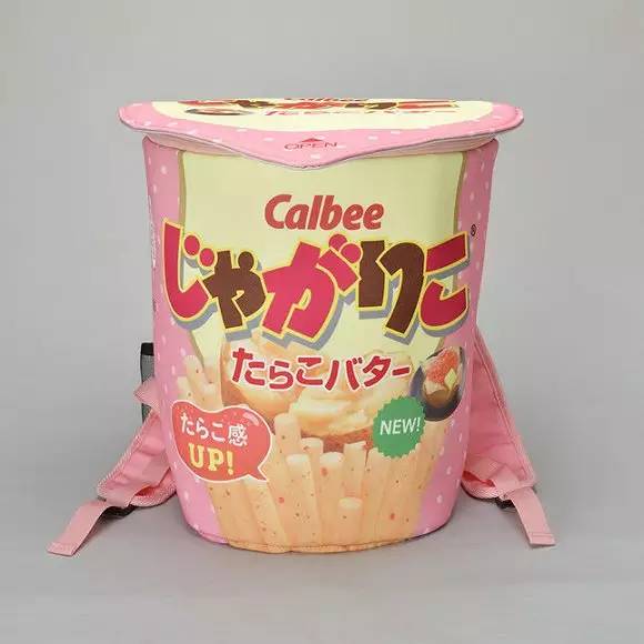 产品简介:赶时髦的卡乐比薯片在近期推出了一款升级版零食背包,颜色是萌萌的少女粉,形状则是旗下经典薯条Jagariko的包装形状,体积却是正常包装的100倍。背包里装着24盒Jagariko薯条,包袋上也贴心地设计了外置口袋,刚好能塞进一盒Jagariko,方便你边走边吃。