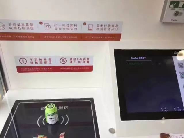在挑选完后,购物者只需将手中的商品放置于收银台的商品识别区上。缤果系统能够一次性感应并识别不超过5件商品,超过5件的需要分批结算。待系统识别完成后,购物者扫描位于屏幕右方的二维码完成支付。