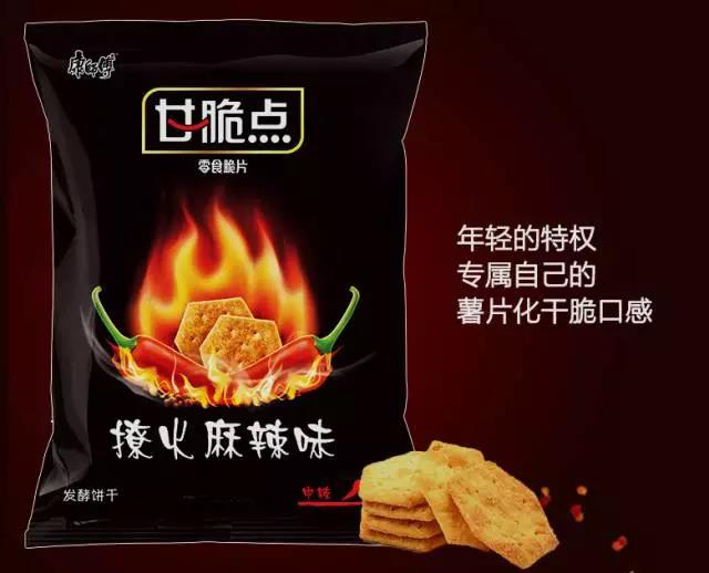近期,康师傅糕饼家族继“3+2”苏打夹心、妙芙蛋糕、雪饼系列之后,再添一力作——甘脆点零食脆片。目前,该款产品有“撩火麻辣味”和“谜之酸辣味”两种口味,有40g和90g两种规格,售价分别为3元/袋和6.5元/袋。