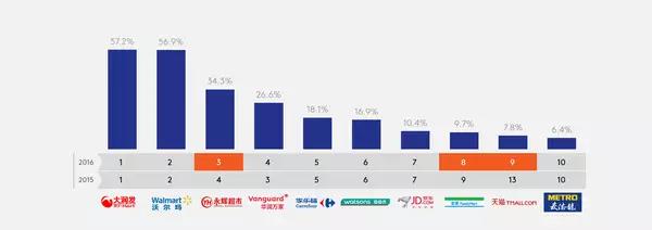 近日,凯度零售咨询(Kantar Retail)发布2016年中国 PoweRanking® 零售力量排行榜调研结果。