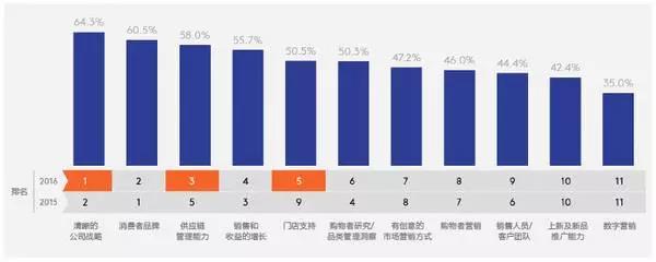 凯度零售咨询(Kantar Retail)发现,2016 年零售商最为看重的是制造商的公司战略,这与行业宏观环境不无关系——在目前迅猛变化的市场形势下,零售商和供应商都需要选择最合适的合作伙伴。