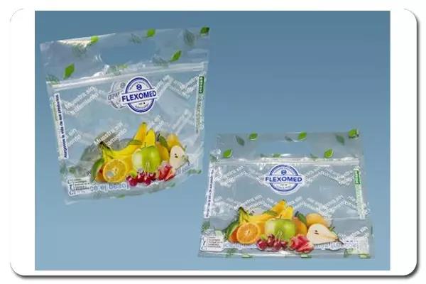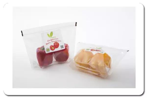此款带拉链、提手的自立袋,内部的复合材料可吸收水果蔬菜中的乙烯。经过草莓、香蕉、茄子等测试,可延长保质期并减少了重量损失,还改善了食物外观。