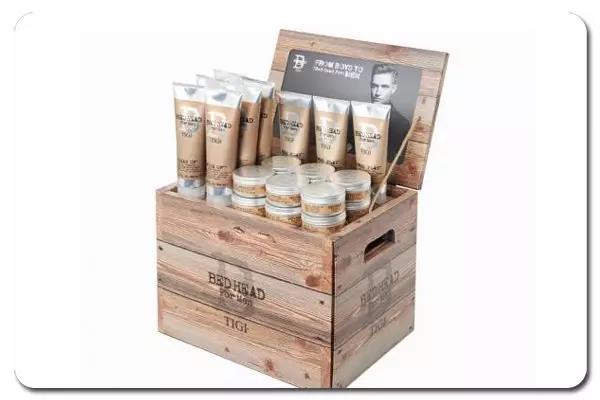 TIGI Bed Head For Men美发产品需要一个全球的销售工具,它采用像一个木头啤酒箱一样的包装形式,可随时转变为展示包装。完全采用纸板制作,其特点是采用提手便于操作人员搬运,采用数码印刷实现真实的木头图案,产生一种带有阳刚感觉的粗糙质地。沙龙里的空间通常比较小,所以箱子提供了带有内置存储空间的小尺寸。