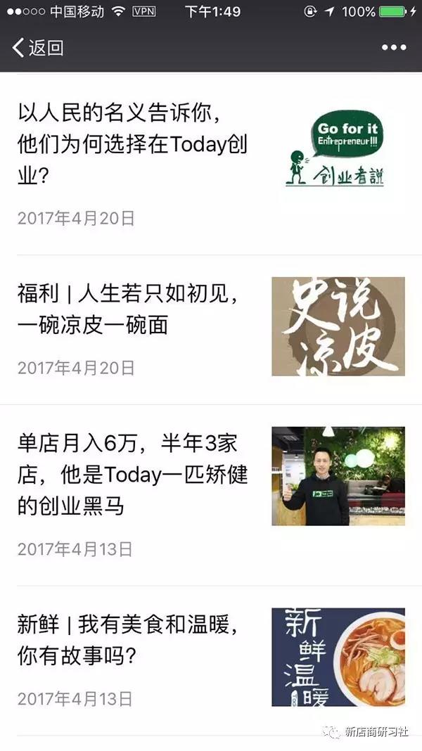 打开Today便利店的微信公众号,你会有一种打开了一个有关创业鸡汤的公众号。吸引眼球的标题+诱导性的推荐,让公众号每天的文章推送变得接地气。