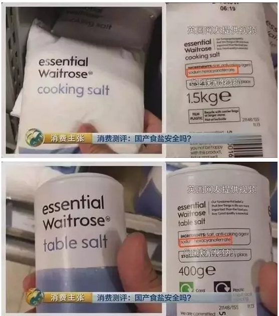 事实证明,无论是在国内销售的进口食盐还是国外超市以及外国购物网站销售的洋品牌食盐,大都含有亚铁氰化钾、亚铁氰化钠这样的抗结剂。