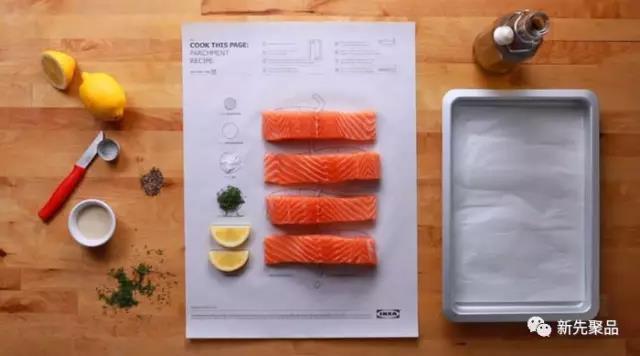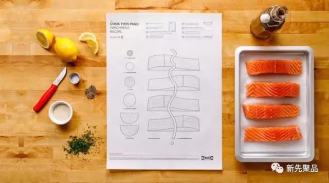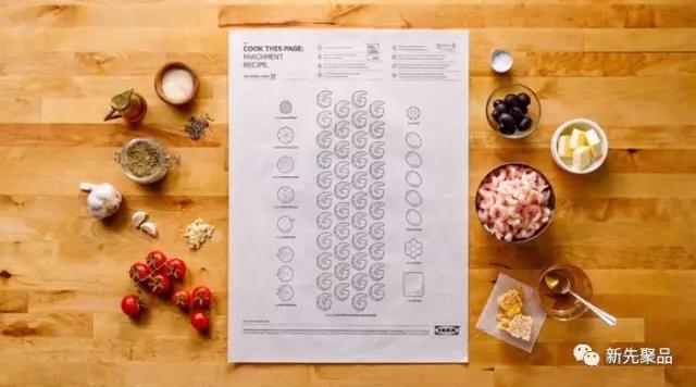 这部名为“Cook This Page”的说明书,其实是一张张印着料理教程的烤盘纸。料理所需的各种材料都印在烤盘纸上,只需要去宜家生鲜部“按图索骥”购买食材,再“填”在相应的“空”里就可以啦!