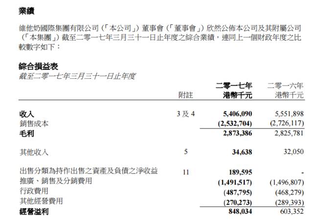 昨日(6月23日),维他奶国际集团有限公司(以下简称“维他奶”)公布了截至2017年3月底的全年业绩,全年收入至54.06亿元港元,约合人民币47.37亿元,同比减少2.63%,主要因为出售了北美洲的主流业务及山水品牌业务,导致收入减少;若除去出售北美洲业务的影响,收入同比增加6%;如果进一步撇除汇率影响,收入增幅达到8%。