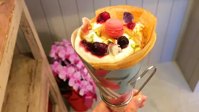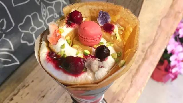 顾客们喜欢将可丽饼与店门口的鲜花一起拍照,拍出的照片很美,在Instagram中也广受好评。