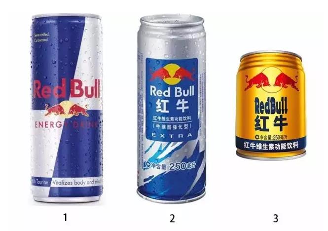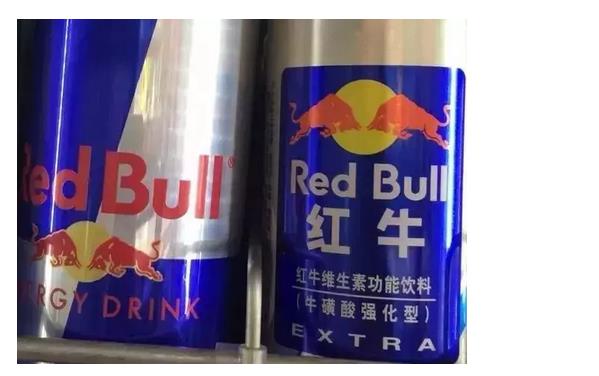 当这两瓶银蓝罐的红牛放在一起的时候,相信绝大多数人会以为这是出自一家公司的进口/国产两个版本。但是!如果你善于玩“大家来找茬”游戏的话,一定会发现这两家饮料的logo是略有不同的。
