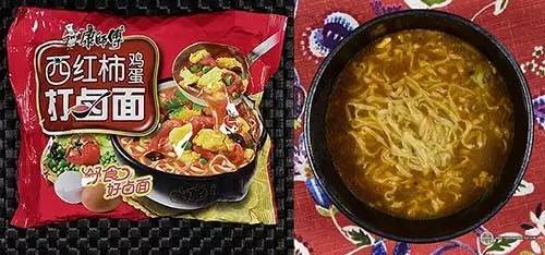 点评:面条非常软,宽度大约是普通方便面的两倍,汤汁有浓浓的番茄味,从蔬菜到豌豆都很棒。
