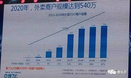 在用户消费需求的拉动下,越来越多的商户从怀疑到不确定,再到加入平台,平台的在线商户数量也是一峰高过一峰,2016年年底,在饿了么上线的商户数已经接近200万,预计今年年底会突破300万,到2020年,应该有望超过500万,并且保持稳定的增长态势。