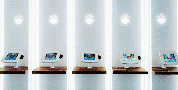 首先,你只需在点餐区的iPad上选择好自己所想要的食材、菜式和饮料。然后提交订单,刷卡支付即可!(iPad上有食物的营养搭配介绍)