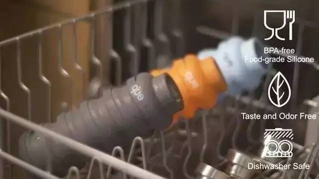 杯子采用螺旋式的设计,材质上是食品级的硅胶,采用了折叠的设计,收起后只有原来的一半大,方便便携。杯子同样适合冰水和热水,最高可达260C高温。