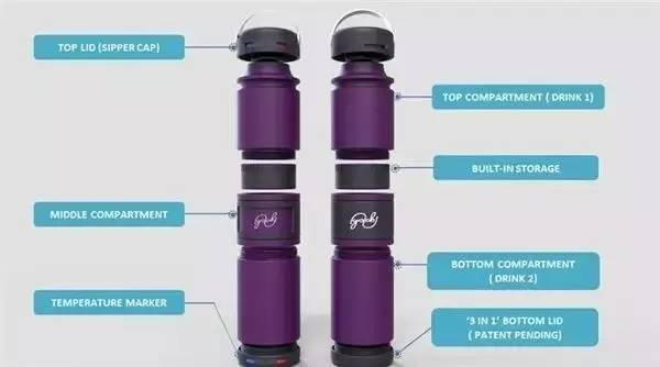 这个水杯带给人们的不仅是造型的简洁和优美,重点是在于它的盖子可以存储粉末状的维C等饮品,当你按下顶部按钮,则自动添加在了水杯之中,方便而可以轻松控制。