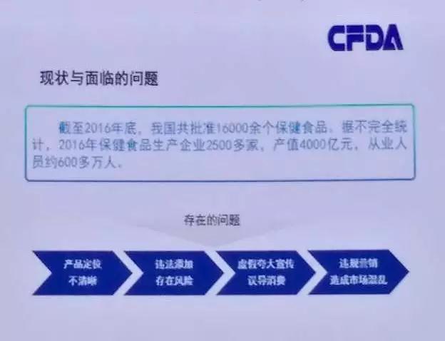 经过30年的发展,中国保健食品产业取得了长足的进步。根据统计,截止2016年底初步统计,共批准了16000个保健食品的注册号,实际投入生产经营的批号可能在9000个,全行业产值约4000亿,从业人员约600多万人。除了正式批准的产品,当然现实中还有很多打着保健的名义生产的非正规“保健食品”。