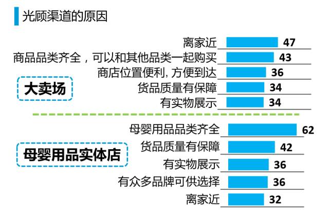 -而母婴用品实体店则是以母婴用品品类齐全(62%)、货品有保障(42%)、有实物展示(36%)成为吸引消费者的光顾的重要因素。