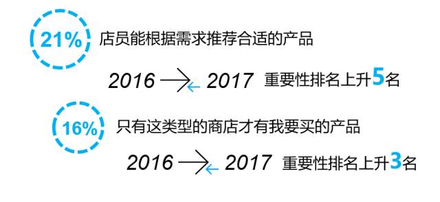 尼尔森也发现,“店员能够根据需求推荐合适的商品”和“只有这类型的商店才有我要买的产品”这两个指标和去年相比增幅较大,分别达到21%和16%,相比去年起重要性排名分别上升了5名和3名,也就是说,消费者一方面对商家、产品的推广方法提出更高要求,另一方面也对商品的独特性有一定期待。同时,对于母婴店而言,分别有四成购物者更期待门店内婴儿游泳池以及提供妈妈临时喂奶的专门区域。
