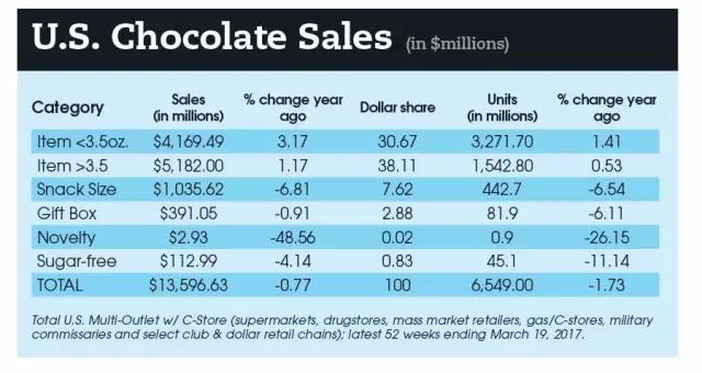 北美市场相对比较稳定,但对生产商来说还是存在诸多挑战,不管是跨国公司还是中型企业、全球性的或区域性的公司。以巧克力为例,尽管整个地区的销售额增加了3.3%,但最近的IRI的数据表明,美国某些特定糖果品类的销量和销售额都有所下降。但众所周知,销售数字往往都会有波动,尤其是随着季节性变化,如复活节、感恩节前后,甚至是天气异常。但是其他市场研究公司,如Mintel指出,在美国这样的主要市场,巧克力的销售已经出现了放缓的迹象。