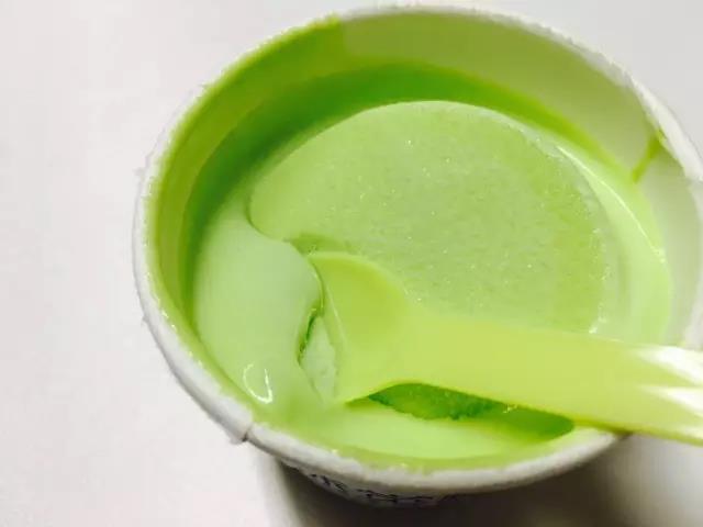撕开包装可以发现,冰激凌是绿色的,和绿茶味道简直一模一样。质地比较软,勺子轻轻一划就深入了。从浓稠的程度来看,这款冰激凌里面奶占的成分很多,口感比较细腻。