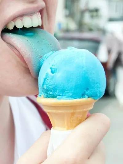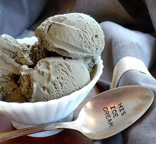 甘草味冰激凌呈现出黑芝麻糊状的炭黑色,吃完之后牙齿和嘴唇都会留下印迹。