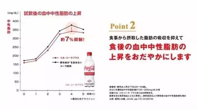 这款研发了6年的产品中添加了水溶性膳食纤维,就是每瓶可乐(470ml)里所含了5g“难消化性麦芽糊精”,而这种物质的功效就是抑制脂肪吸收。