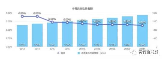 2016 年,中国冲调类热饮(速溶咖啡、茶、果珍等)销售额 1200 亿元,同比上涨 5.0%;预计 2021 年销售额为 1502 亿元,2016-2021 年的年均复合增长率为 4.6%;2013-2021 年增速持续放缓。