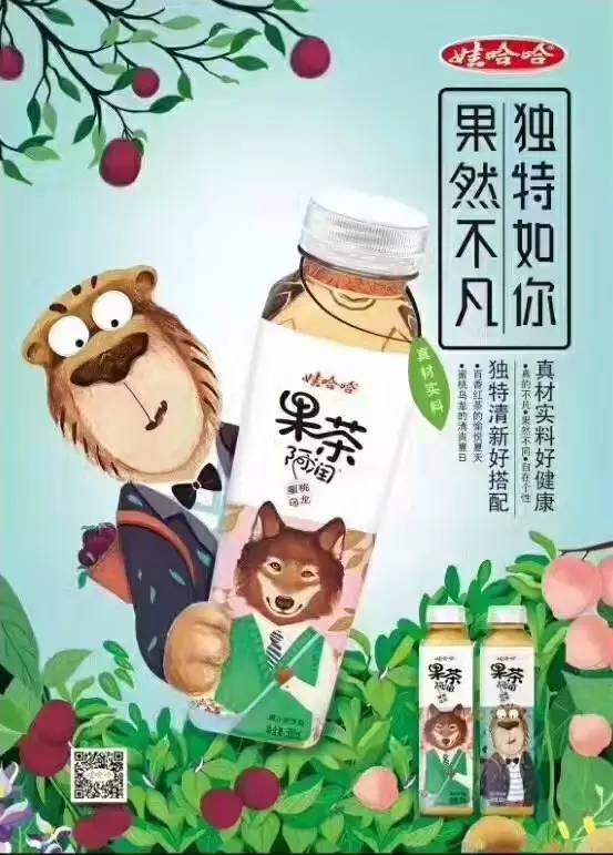 茶饮正在走向年轻化和趣味化,而茶饮料有着几百亿的市场空间,小茗的同学和茶π各自才有10-20亿左右的销售规模,如果要替代传统的一些茶饮料,那么在上百亿的市场空间上,未来年轻化的茶饮料仍然大有可为。作为国内饮料巨头的娃哈哈似乎也按捺不住在南京首先推出了一款年轻、有趣的果汁茶饮料——“果茶阿润”。