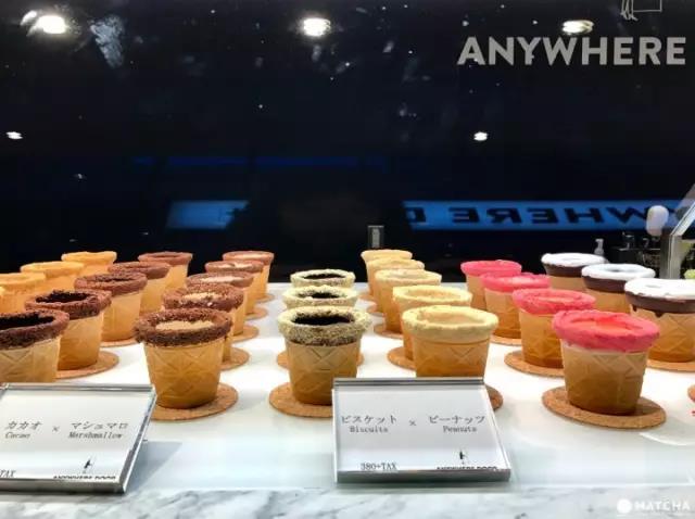 点餐时,先从琳琅满目的甜筒杯子里选择喜欢的口味。有黑巧克力、白巧克力、焦糖、棉花糖等各式各样的风味可供选择,种类丰富,让人难以抉择。