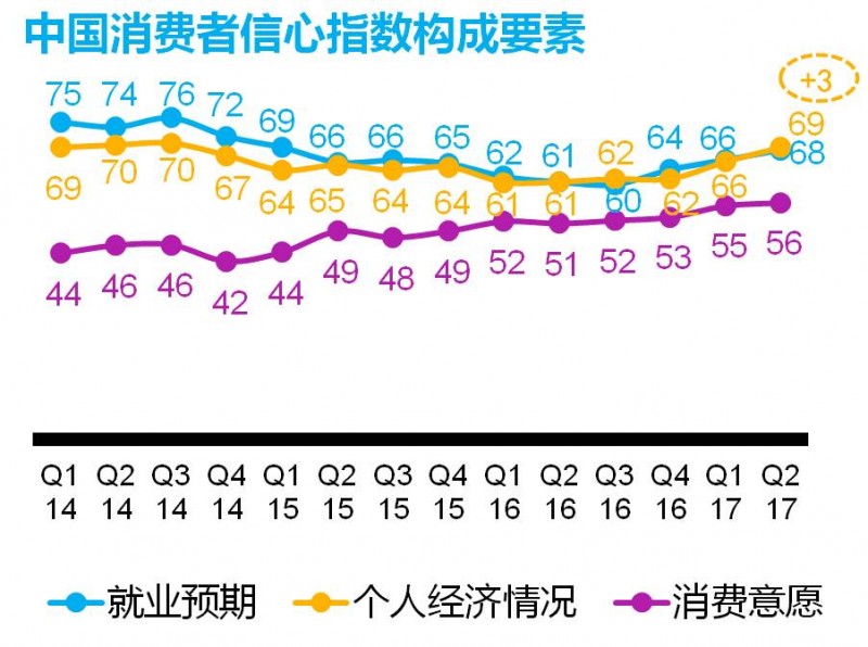 尼尔森报告显示,中国消费者对个人经济状况和就业预期的乐观态度,以及消费意愿的提升,都拉升了第二季度消费者信心。