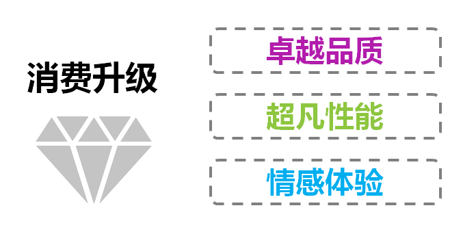 在消费升级的大背景下,消费者需要被满足的不仅仅是对卓越品质和超凡性能的需求,还有精神层面对情感体验的需求,这三要素成为推动消费升级的重要维度。