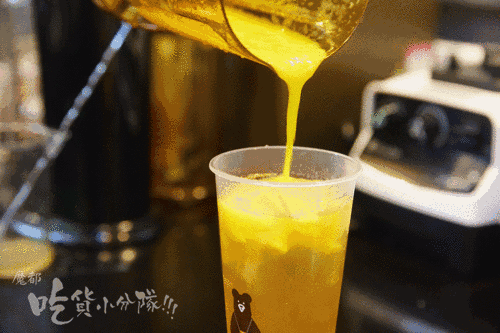 芒果绿:把芒果打成了奶盖质地的果茸,浓稠绵密,浇盖在蜂蜜绿茶上。纯水果“奶盖”怎么都不会腻了。