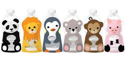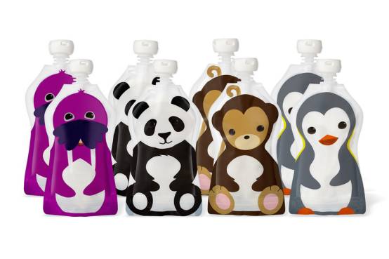 如果你的宝贝是一个动物爱好者,她们肯定会喜欢这些动物主题、环保并且可以重复使用的婴儿食物袋。妈妈们把为宝贝准备的可以吸食的果泥、牛奶装进这些可爱的袋子里,宝贝便可以把小熊猫、小企鹅捧在手心里,自己进食了。
