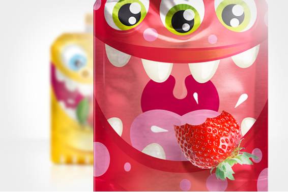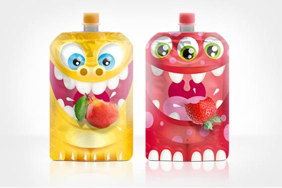这款包装也是以怪兽为主打,疯狂的眼睛和闪亮的颜色带来强烈的视觉感官刺激。这些友好、有趣、不太可怕的小怪兽们包裹起草莓和香蕉泥,很受小宝宝们的欢迎。