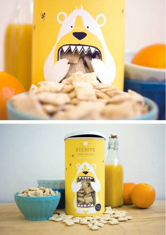 这款谷物包装与标准的谷物袋/盒大相径庭,却从激烈的设计竞争中脱颖而出。除了包装上蠢萌的大熊形象,包装简洁时尚的风格,明黄为主的色调也很讨喜。