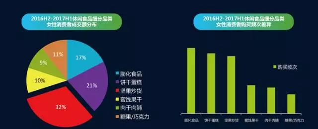 在6大品项当中,坚果炒货凭借营养、健康、美味的优势成为女性选购零食的首选,在成交额中的占比高达32%,不过有趣的是,虽然把更多钱花在了坚果炒货上,但最令女性消费者念念不忘的却是膨化食品,选购频次明显高于其他品类。