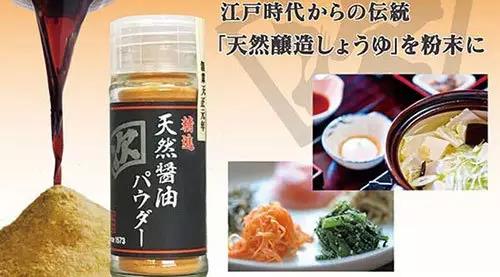 最近几年,日本开始流行起食用粉末式的酱油,与传统酱油相比,它不仅可以避免将食物淋湿,让酥炸类菜品保持爽脆的口感,还可以防止倒入太多酱油,让料理变得太咸,就像胡椒粉一样,想吃多咸就倒多少粉末酱油在食物上。