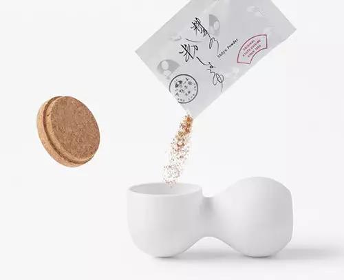 Nendo 团队设计师将新容器的口部设计成一个带盖子的碗状,使用者可以在每次使用时知道使用的量,碗底做成平的,便可以平放在桌上,而碗口呈漏斗状,很方便就可以补充新的粉末,使用者只需要轻轻转动手腕,即可将粉末酱油均匀撒在食物上,如果向自己的相仿倾斜手柄,又可将粉末倒入容器中。