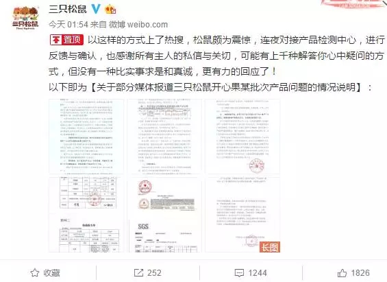 从声明中看,“三只松鼠”出具了几方面的证据,包括原料入厂、出厂和同批次送样检测报告,均证明是合格的。