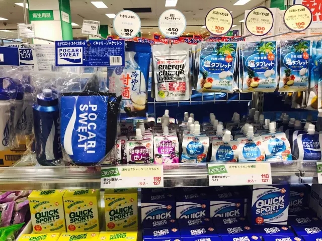 日本一进入夏季就会倡导防「热中症」(中暑),其中最重要的对策就是多补充水分、盐分和矿物质。商店里会推出许多这方面的饮料与糖果,以供人们选择。
