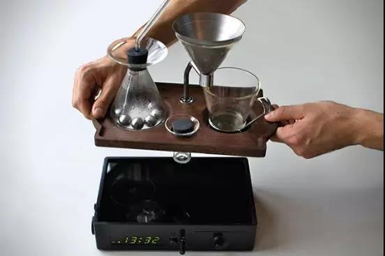 Barisieur 是英国设计师 Josh Renouf 的作品,它将煮咖啡的场所从冷冰冰的厨房转移到了卧室床头。清晨,咖啡机上的小钢球就会轻轻震动,发出细微的声响。这是小钢球在传递底座传来的热量用于加热清水,随着温度升高,小钢球的动作幅度也会随着增大,咖啡机就会开始工作。在太阳出来之前,在你匆忙出门之前,在你上班迟到之前,你就会被咖啡机的声响和咖啡的香味唤醒了。