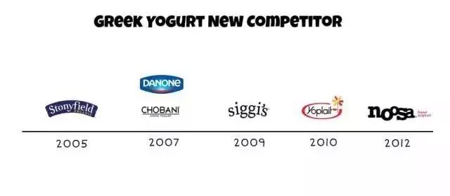 上面一组数据表现了美国希腊酸奶市场奇迹般的增长,这也是老中医在《创新:关于Chobani的成功,你可能读了假报告》所提到的背景,有趣的是,现在希腊酸奶市场的霸主Chobani 却不是这个品类的开创者。