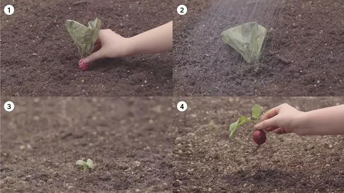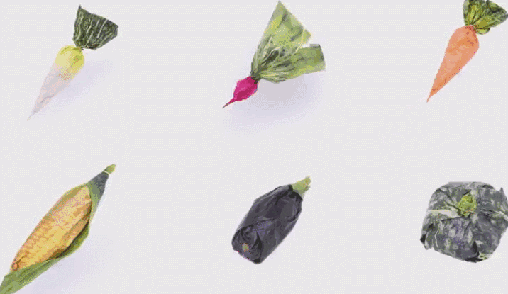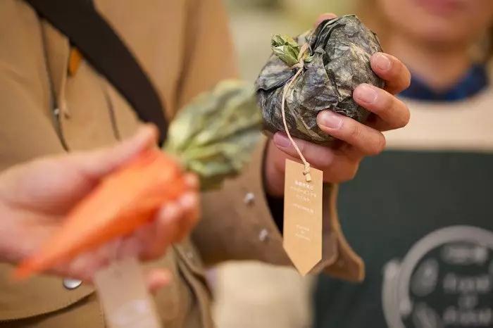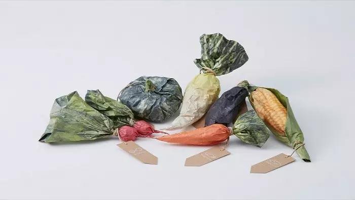 印有蔬菜图案的包装纸,是由可降解材料制成的