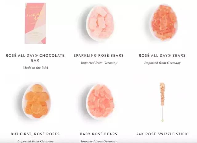 除了包装以外,Sugarfina 也相当于擅长于营销,O’Neill 一直在社交媒体上寻找能够重新包装成适合拍照的糖果的饮食趋势。比如我们之前报道过,根据尼尔森六月的数据,在过去 52 周内,桃红酒在美国的销售额增长了 53%,成为了最受美国人欢迎的葡萄酒之一。