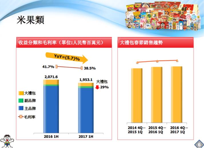 对于收益的下滑,中国旺旺方面指出,公司收益同比衰退,主要是因为2017年春节较2016年提前11天,使部分春节产品相关业绩确认在2016年底的比例比前一年更多,而致第一季度业绩与去年同期相交有所下滑,但常态销售符合管理层预期。