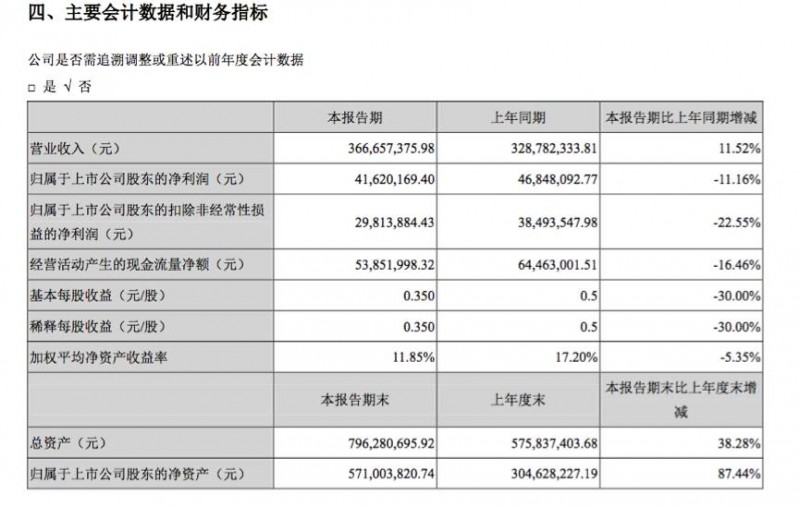 近期盐津铺子食品股份有限公司(以下简称“盐津铺子”)发布2017年半年报。报告显示,上半年盐津铺子营业收入3.66亿元,同比增长11.52%,营业成本1.91亿元,同比增加16.62%,归属股东净利润4162万元,同比下跌11.16%,经营活动产生的现金流5385万元,同比下降16.46%。