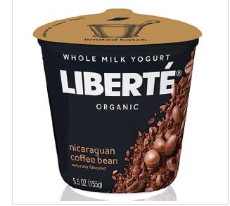 Liberté酸奶是通用磨坊旗下品牌,在其有机全脂酸奶酪系列中添加了两种新口味——印尼香草豆和尼加拉瓜咖啡豆(限量版)。香草口味含有220卡路里、11克脂肪、21克糖和5克蛋白质/5.5盎司。其风味与公司其他八种口味,包括椰子和芒果在内,组成了一个产品系列。