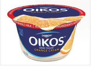 达能公司推出了一款新的橙色奶油风味、全脂希腊酸奶。一个5.3盎司的包装产品中,含有150卡路里、4.5克脂肪、13克糖和11克蛋白质。其风味与公司其他八种全脂牛奶风味,包括香蕉奶油和草莓在内,组成了一个产品系列。