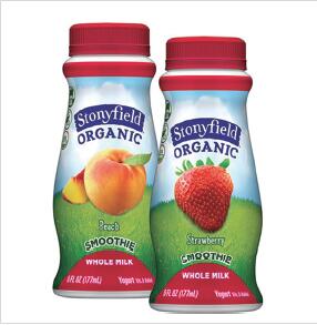 Stonyfield有机酸奶公司推出了桃和草莓两种口味的全脂牛奶饮用型奶昔。草莓口味含有160卡路里、7克脂肪、15克糖,及6克蛋白质/6盎司。这款非转基因奶昔在美国全国范围内的全食超市都可选择,每4个6盎司瓶为一组合包装。